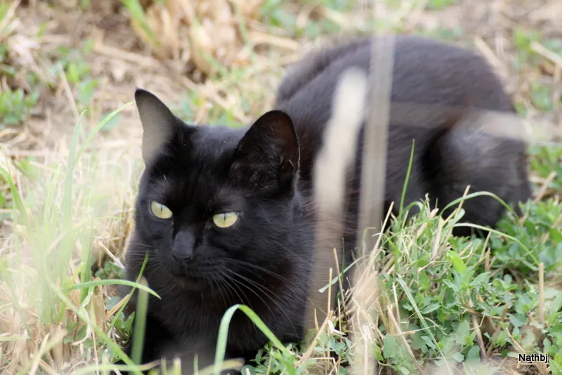 Bah!si je t’ai vu joli chat noir aux yeux verts.